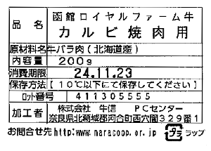 ならコープでは牛肉に牛の個体識別番号または、ロット番号を表示しています。