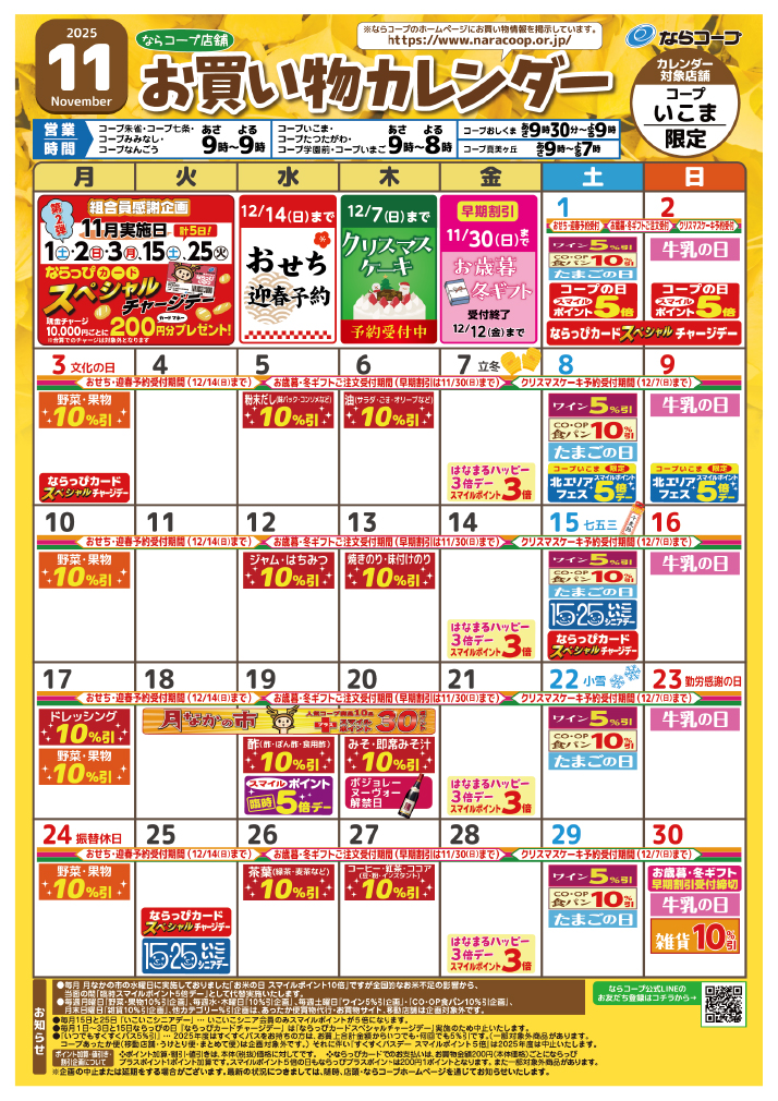 コープあったか便、宅配便、ぴゅあウォーター、くらしの相談コーナー、郵便ポスト、キャッシュコーナー(南都銀行)、農産物直売所、酒、自動写真撮影機、リサイクルコーナー(※)