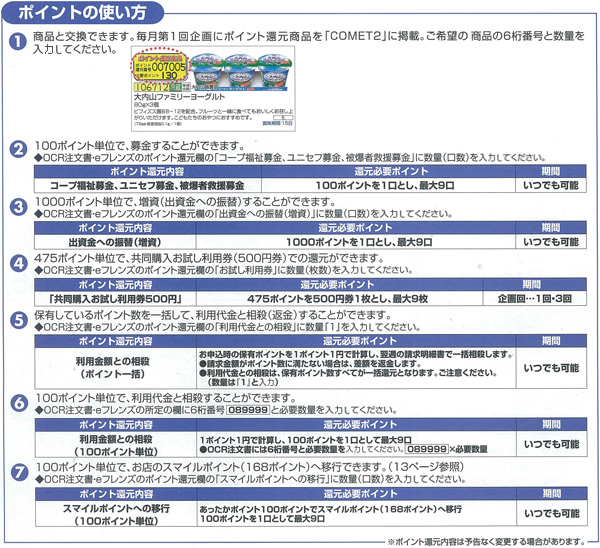 共同購入(班)・地域受取ハウス・こまどり便をご利用いただくと、利用金額に応じてポイントを加算します。