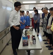 学習の後はいよいよ試食です。定番商品に加えミートボールにワカメとキュウリを混ぜたアレンジメニューなど、どれも美味しく「こんな使い方もあるのね」「私もまた夕飯の一品に作ってみよう!」の声が上がっていました。