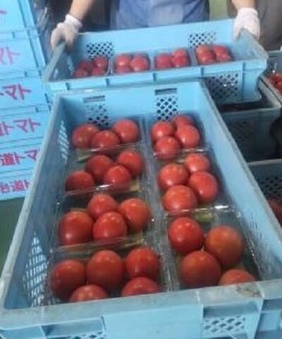 説明で、トマトの箱やケースを再利用しているが、新しいものを使う方がコストはかからないこと。出始めのトマトの方が糖度が高いこと。6月が出荷のピークであることなどがわかりました。