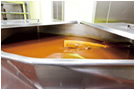 煮熟法と蒸熟法を組み合わせて大豆を処理、米麹の甘味を生かした7割麹で約7ヵ月間熟成する天然醸造味噌のタンク。 |