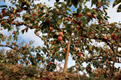 柿山の手入れは、冬、どの木にも日光が多くあたるよう枝を間引く剪定からはじまる。寒気に耐えての作業になるが、後の出来ばえを左右するたいせつな基本。4月下旬から5月下旬は、花のつぼみの間引きだ。通例、柿の小枝には4個から8個ほどのつぼみが付く。これをひとつだけ残して取り除く。広大な柿の園地に立てば気の遠くなるような作業だと解るけれど、うまさの条件は一枝に一果。養分が均等に行き渡ってこそ、良質な実が育つ。その間も施肥や、木・枝を支えるための養生に努めたりと作業が続き、ようやく秋の収穫へ。その気持ちを生産者はこんなふうに教えてくれた。